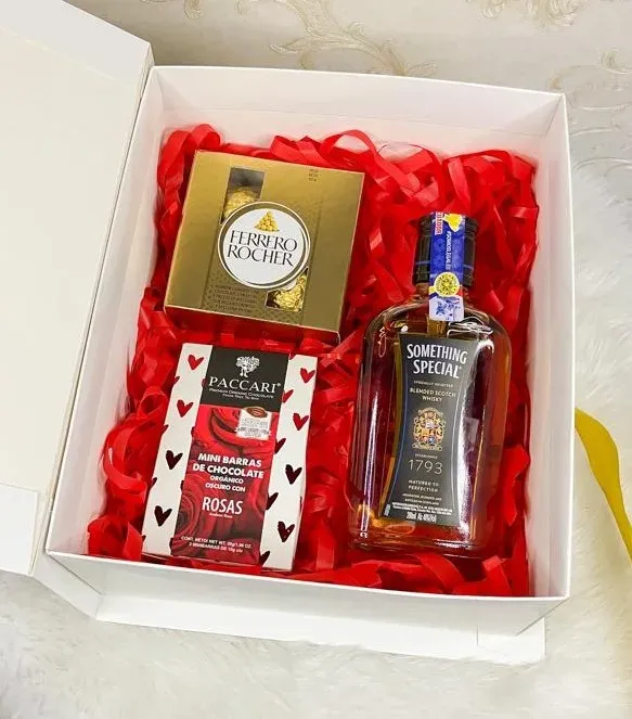 Sorprende con un detalle que despierta los sentidos: un exquisito arreglo que combina la intensidad del whisky premium con la dulzura de finos chocolates artesanales. Perfecto para celebrar momentos especiales, agradecer con estilo o simplemente disfrutar de un placer sofisticado. Presentado en una ...