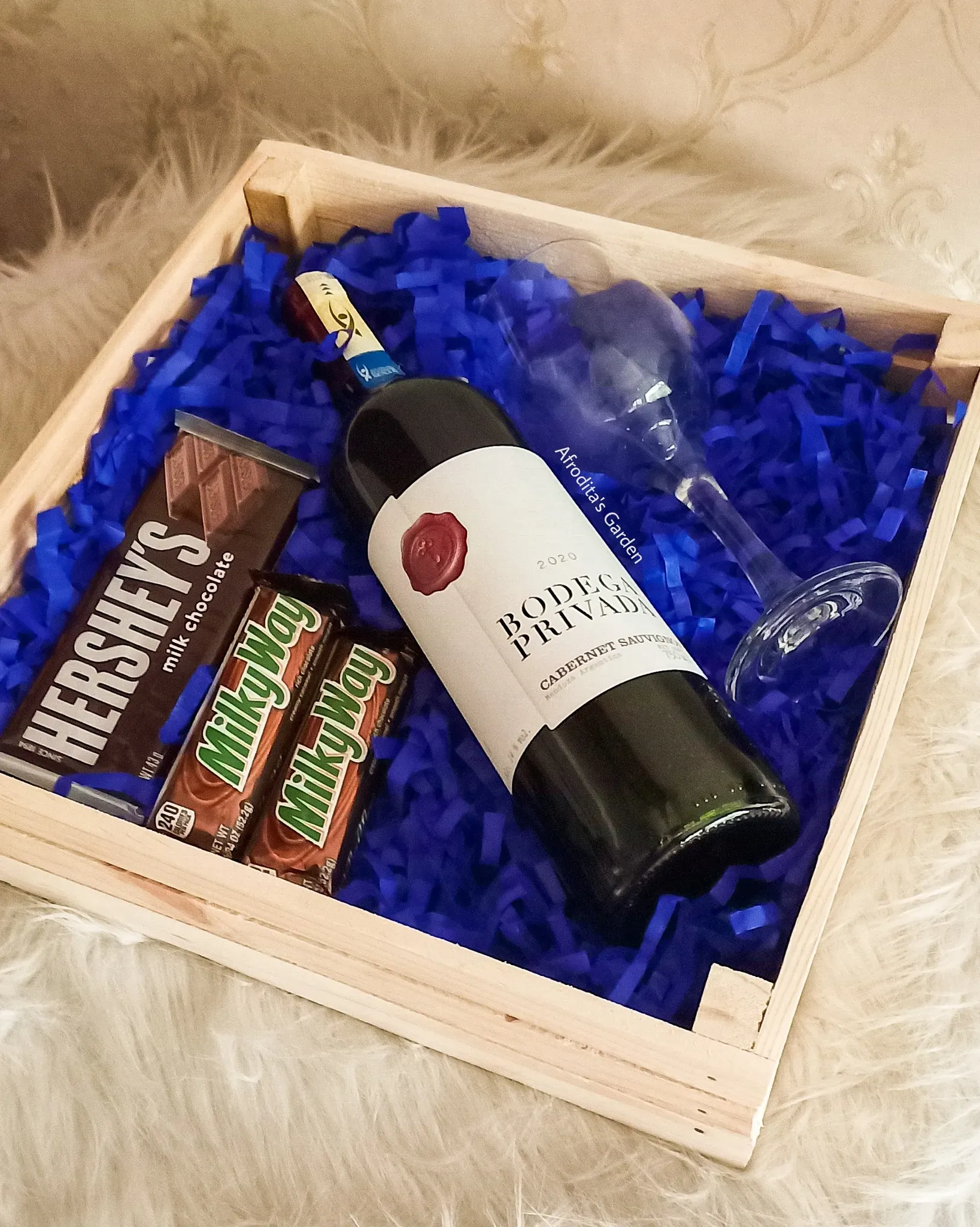 Un detalle pensado para crear momentos inolvidables. Este delicado arreglo incluye una elegante copa de vino vacía, lista para el primer brindis, acompañada de una exquisita botella de vino y una selección de chocolates. Ideal para regalar en celebraciones, aniversarios o simplemente para decir “est...