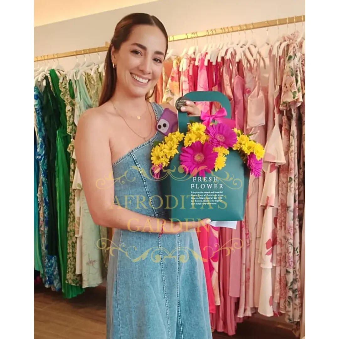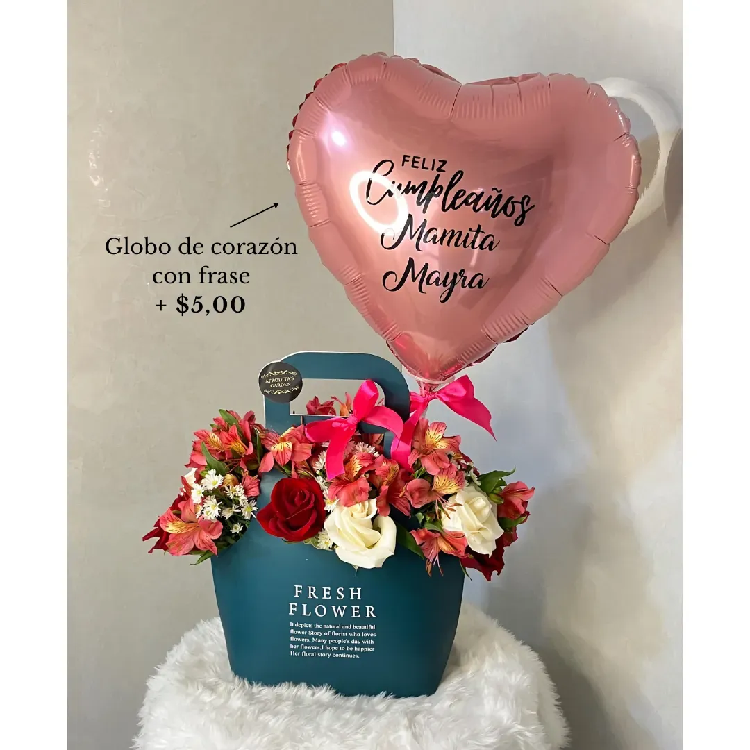 Exclusivo diseño de cartera floral. Esta opción única es perfecta para quienes desean una sorpresa diferente y original.